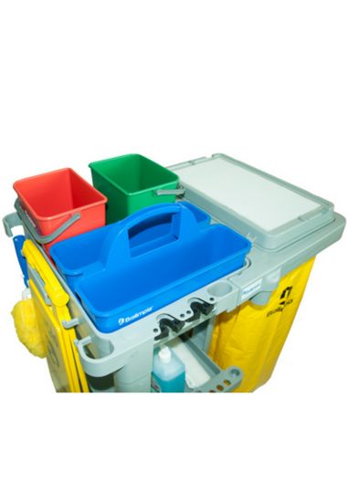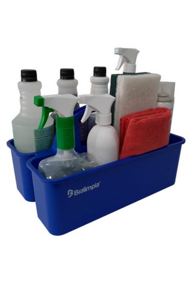 Cesto funcional para transporte e acondicionamento de equipamentos, acessórios e outros insumos para tarefas de limpeza e higienização. Produzidos em Polipropileno, proporcionam excelente durabilidade e resistem à ação de químicos e de quebras. Alça anatômica que promove ergonomia e previne danos às mãos dos operadores e superfícies nos ambientes onde são utilizados.