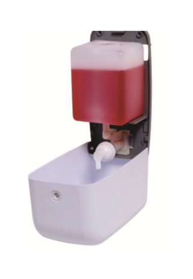 SABONETEIRA EXACCTA PLUS CRISTAL - VÁLVULA FIXA RESERVATÓRIO (ESPUMA) Proporcionamos para você uma linha de dispensadores especialmente elaborada Para quem procura custo x benefício, sem abrir mão da leveza de seu design. Reservatório de 1 L com válvula fixa espuma CX MASTER - Ideal para comodato - os dispensadores são embalados internamente em saquinhos plásticos - menor custo e menor descarte de embalagem. Cores disponíveis: branco, cristal e preto Instalação: buchas e parafusos (incluídos) Sistema de Abertura e fechamento: sistema por chave.