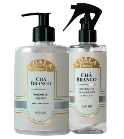 ODORIZANTE COALA HOME CHA BRANCO 260ML - SABONETE LIQ COALA CHA BRANCO PUMP 500ML - ALCOOL GEL 70 ASSEPTGEL 420G - GEL ADESIVO LIPEX 7G - KIT